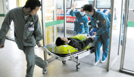 “急救醫(yī)生變身‘最美擔架哥’,要給他120個贊!”昨日,一名醫(yī)生在泥地里搶救、抬送傷員的照...